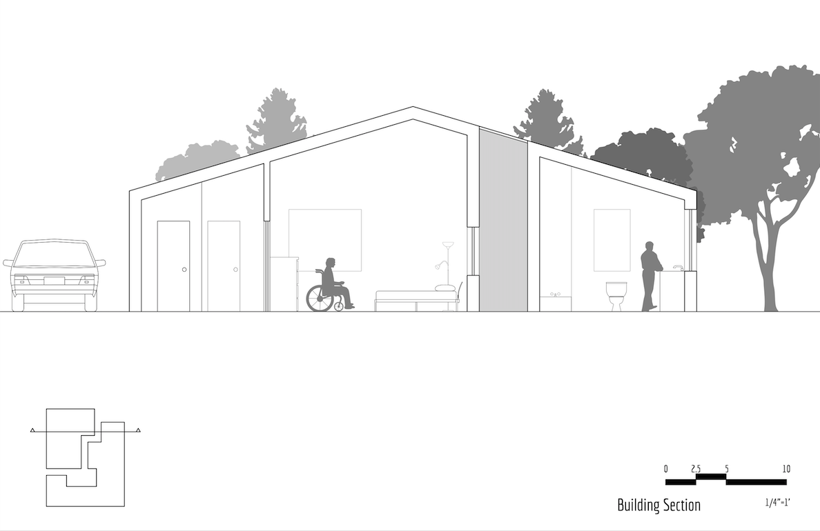This third year undergraduate design studio was composed of three main projects oriented around the potentials for architecture at the urban design scale. Beginning with analysis and reinterpretation of historical and current conditions through mapping and projecting, students assessed the barriers and boundaries that have created the fabric of the urban condition as well as that of the site area, St. Clair Superior in Cleveland, OH. Next, students worked directly (remotely) with community stakeholders to conduct site analysis and put together a collective document of research and analysis which will culminate in individual proposals for small, vacant lot programmatic intervention. The third and final project looks at two models of multi-family development: the traditional duplex and the accessory dwelling unit (ADU or granny flat). The housing was required to accommodate a multigenerational family unit, with consideration of a variety of family relationships and dynamics. Each housing unit must be designed for accessibility and with considerations for aging needs. In addition, as a continuation of Project 02, the housing proposal will combine with the public program interventions, what are the implications and potentials of the house + the external program?